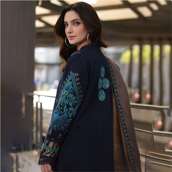 - Embroidery Dyed Khaddar Front 1.25 Mtr