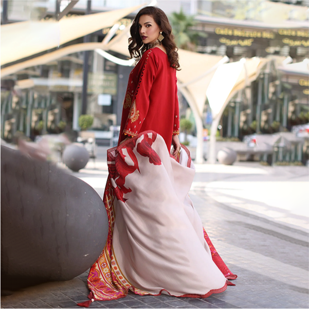 - Embroidery Printed Wool Shawl 2.50 Mtr